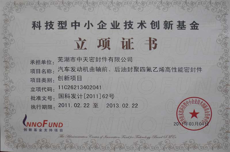 科技型中小企業(yè)技術(shù)創(chuàng)新基金立項(xiàng)證書