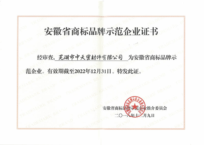 安徽省商標(biāo)品牌示范企業(yè)證書(shū)